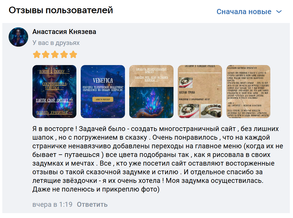 Я веду каждый проект лично: от идеи до запуска. Без посредников и долгой переписки — вы всегда точно знаете, на каком этапе работа и какие правки уже внесены.