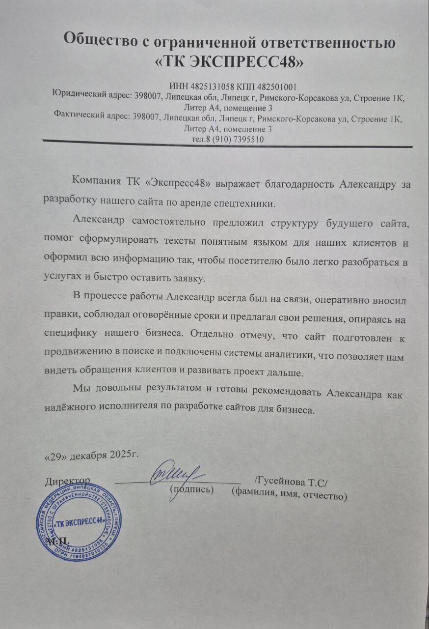 Лично создаю адаптивные и стильные решения под потребности малого бизнеса, индивидуальных предпринимателей и локальных компаний.